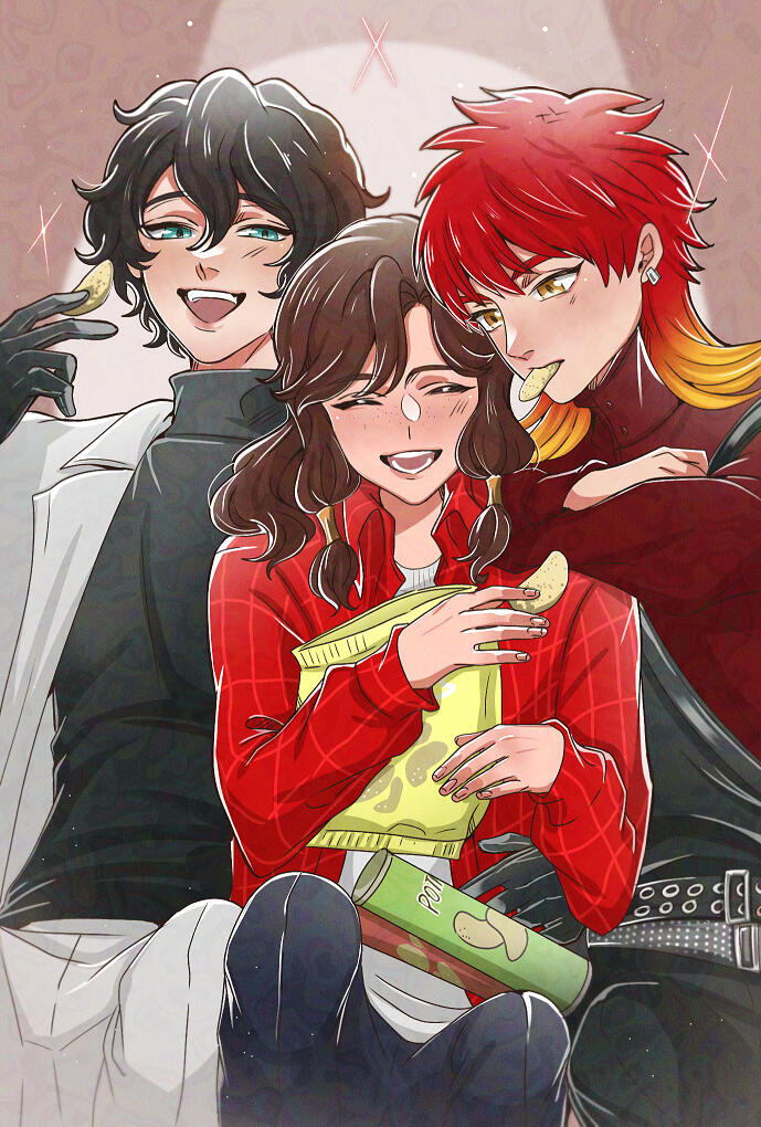 attends school near the entertainment district and often goes there to fuck around or to his part-time job. rarely goes to class - mostly to see K. he has a part-time job at a merch store. until he moves out, he only went home to sleep as he can't stand his parents. has an older brother who works as a mechanic near Makochi and a twin brother who is currently missing.he is extremely short-tempered and very aggressive. he's attacked people seemingly unprovoked, especially if they touch his things without permission - once beating up a classmate mid-class. besides this, he's mostly friendly and can appear quiet, but he's very passionate and loud when in a good mood.likes junkfood, fruit boba, the city at night